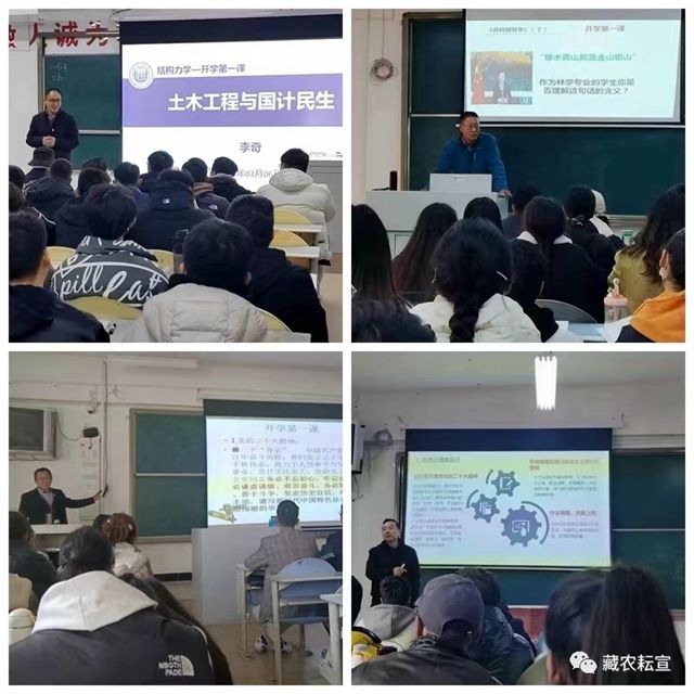 为全面贯彻落实党的二十大精神,坚持用习近平新时代中国特色社会主义思想凝心铸魂,不断推进思政课程与课程思政提质增效,3月6日以来,西藏农牧学院结合学校实际,认真组织了2023年春季学期“开学第一课”活动,发挥课堂主渠道作用,切实引导青年学生深刻领悟“两个确立”的决定性意义,增强“四个意识”、坚定“四个自信”、做到“两个维护”, 将个人理想融入国家和民族事业中,立志做有理想、敢担当、能吃苦、肯奋斗的新时代好青年。