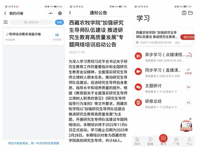 2023年,学校将持续推进导师培训向深入发展,丰富培训方式,组织开展导师交流研讨、导师沙龙等集中活动。本次导师培训得到了各学院(所)的大力支持。通过此次培训,研究生导师要继续秉承“博学为农、精业兴藏”的农院校训,大力弘扬“老西藏精神”和学校“筹建精神”,营造以师为先的育人氛围,为学校研究生教育高质量发展、学科建设和更名申博工作做出应有贡献。