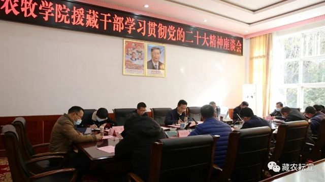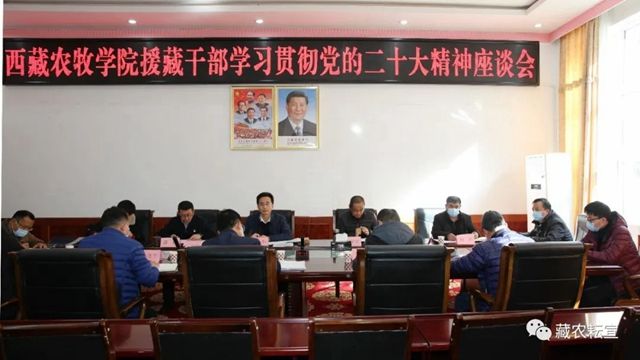 近日,西藏农牧学院援藏干部人才召开学习贯彻党的二十大精神座谈会。会议由学院党委组织部部长毛国斌主持,学院党委副书记、副院长苏大鹏出席会议并讲话,学院办公室主任薛涛和学院援藏干部人才、博士服务团成员、挂职干部参加会议。