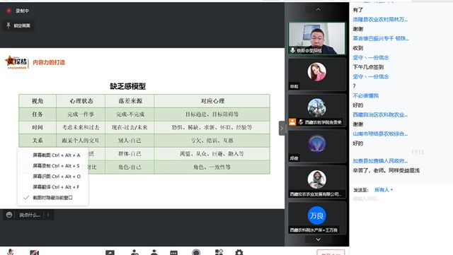 本次高研班,聚焦“三农”工作,聚焦乡村振兴战略的各个层面、各个方面,聚焦生态及融合发展,采用线上方式进行,先后开讲浙江大学郭红东教授的《农村电子商务》,西北农林科技大学高建忠教授的《农民专业合作社实务》,西北农林科技大学郭亚军副教授的《乡镇(村)主导产业和特色产业的培育与发展》,电商与品牌营运专家、星探桔(杭州)网络科技有限公司董事长/CEO张铁成的《农业品牌化的理论与实践》,西藏农牧学院潘刚教授的《西藏自然生态环境现状及生态文明高地建设的实践》,西藏农牧学院赵佩燕副教授的《生态旅游文化农牧业融合发展》6场专题报告。分享了各位老师在教学、科研和社会服务工作中的最新成果,分享了农村电子商务、农民专业合作社、特色产业、农业品牌化、自然生态、生态旅游等领域的探索与成功经验,涵盖国家宏观政策、理论研究、成功的工作模式,面临的现实问题、解决问题的措施、需要注意的事项,国内不同省区特色产业、农产品开发及营销的成功案例、先进典型,西藏的生态环境、生态旅游、藏民族文化等等方面。