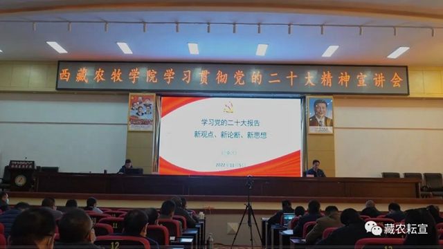 11月5日,西藏农牧学院举办学习贯彻党的二十大精神辅导报告。学校党委副书记、副院长苏大鹏主持并讲话。自治区党委党校副校长、自治区行政学院副院长巴桑次仁受邀为学校干部师生代表作报告。