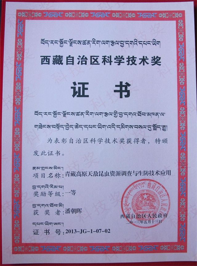 (4)在成果获奖方面,2011年以来,研究所人员1人次获国家科技进步二等奖,2人次获西藏自治区科学技术奖一等奖,4人次获西藏自治科学技术奖二等奖,7人次获西藏自治科学技术奖三等奖,1人次获西藏自治区高等学校人文社会科学研究优秀成果奖三等奖。1人次获河南省优秀图书一等奖,1人获首届“西藏自治区优秀科技工作者”。