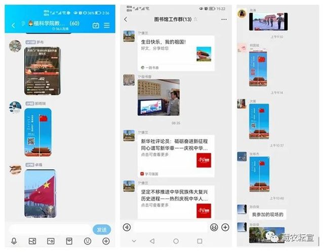 喜悦之情溢于言表,师生们在各自的微信朋友圈,通过图文、视频纷纷打卡留念,尽情抒发爱党爱国之情,感恩中国共产党,祝福祖国繁荣昌盛。