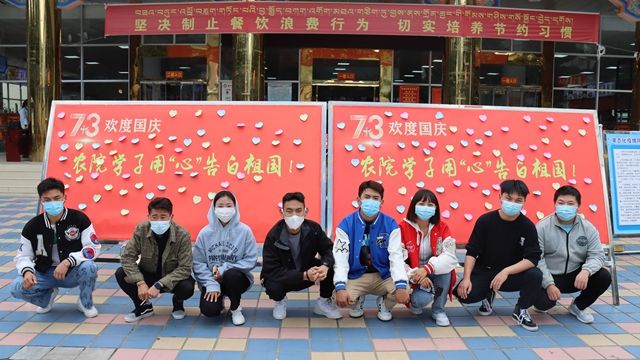 为喜迎党的二十大,庆祝祖国母亲73周年华诞,2022年10月1日,西藏农牧学院团委、学生会在学生第一食堂前组织开展了“青春献礼二十大 强国有我新征程”向祖国母亲真挚告白活动。