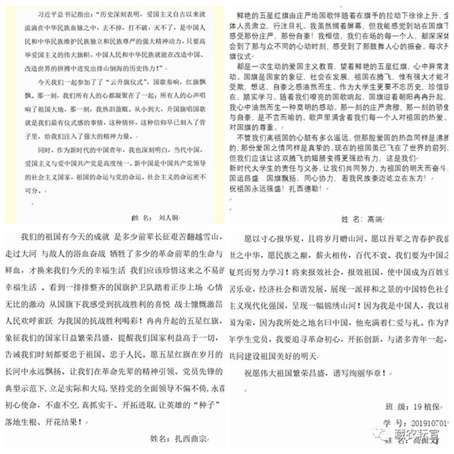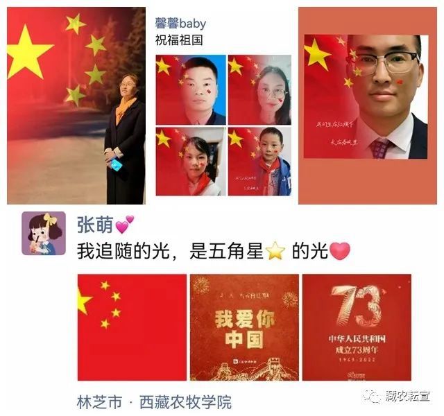 连日来,西藏农牧学院师生认真做好疫情防控工作,利用有限条件,以线上线下多种形式开展庆祝中华人民共和国成立73周年系列活动,进一步弘扬爱国主义精神,唱响时代赞歌。