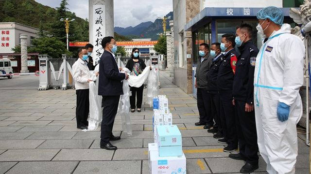 在东大门一线防控点,云丹加措为一线防控人员献上洁白的哈达,对他们严格落实学院疫情防控部署,克服困难、坚守职责、守好校园疫情防控的第一道防线表示了诚挚的问候。云丹加措强调,有大家共同的努力,一切困难都会克服,希望大家继续严守工作纪律,严格防控要求,切实将新冠肺炎病毒堵在校门之外,守护好校内师生安全。