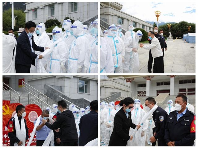 2022年8月13日,学院党委书记云丹加措、院长娄源冰带领学院领导苏大鹏、强巴央宗及相关部门负责同志,前往东大门一线防控点、文体馆核酸检测点等重要场所,看望慰问志愿者及一线工作人员,向他们送去学院的关心关怀。