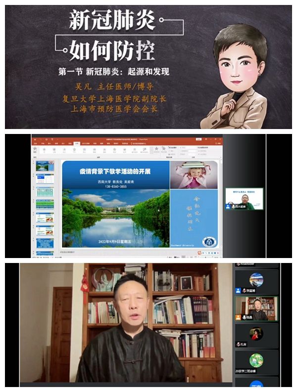 培训工作以线上课程学习以及线上讲座两种形式开展,内容丰富、精彩纷呈、针对性较强。全院师生通过超星学习通平台学习了复旦大学上海医学院副院长吴凡教授、附属华山医院张文宏教授开设的“新冠肺炎防控第一课”。先后邀请了四川大学教授、著名心理学家、得觉学派创始人兼四川大学得觉文化发展研究中心主任格桑泽仁以及西南大学教务处处长吴能表两位老师分别围绕“共克时艰 抗疫有我 积极心态 超越逆境”、“疫情背景下高校教师教学活动的开展”开展讲座。全院累计7500余人次参加了培训。培训过程中,专家通过举案例、列数据、作分析、搞互动等方式,详细讲解了疫情防控有关知识,并结合我院实际给出了相应的意见建议,为全院师生更好适应疫情防控下教学工作的开展提供了重要参考,提高了师生主动开展自我防护、自我调节的能力,得到了师生一致好评,取得了预期效果。