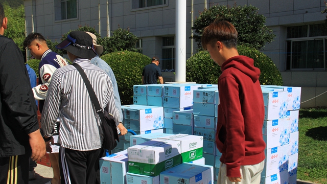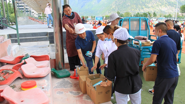 7月14日以来,西藏农牧学院1400名参加西藏自治区第十三届运动会暨第五届民族传统体育运动会开幕式表演的学生,全天候在运动场进行节目排练。近期,连日来的烈日骄阳使饮水剧增,瓶装饮用水使用量增大,供水紧张,校内外15家服务商家获悉后,解学校所急,主动捐赠790箱饮用水,以保障参演训练同学足量用水。其中,伊香苑餐厅捐赠50箱、林隆水果店捐赠100箱、学生一食堂一楼捐赠50箱、一食堂二楼捐赠50箱、二食堂一楼捐赠50箱、二食堂二楼捐赠50箱、亿邦学生超市捐赠50箱、家茶馆捐赠50箱、职工食堂捐赠100箱、一食堂一楼蓬旺商店捐赠50箱、林芝市卓越广告有限公司捐赠120箱、主流理发店捐赠10箱、洗衣房捐赠10箱、玛努卡奶茶店捐赠50箱。另外,研究生食堂捐赠1500根老冰棍,为学生带来夏日的凉爽。