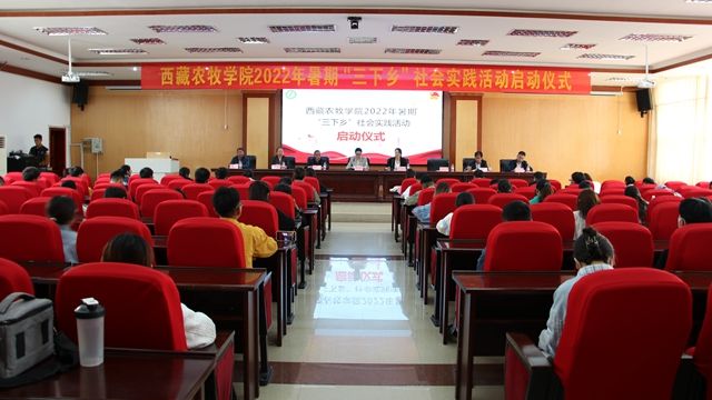 为贯彻落实习近平总书记在庆祝中国共产主义青年团成立100周年大会上的重要讲话精神,引导广大青年在社会实践中“受教育、长才干、作贡献”,喜迎党的二十大胜利召开。7月14日,西藏农牧学院在研究生苑1号报告厅举行了2022年暑期“三下乡”社会实践活动启动仪式。院党委委员、副院长强巴央宗出席,各二级学院分管团学工作领导、团委副书记普旺堆、90名下乡队员代表参加了启动仪式,会议由团委书记白玛卓嘎主持。