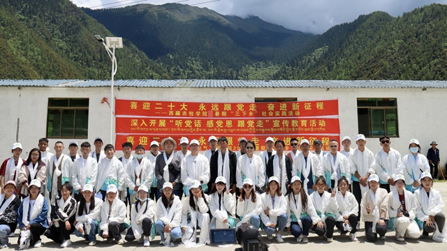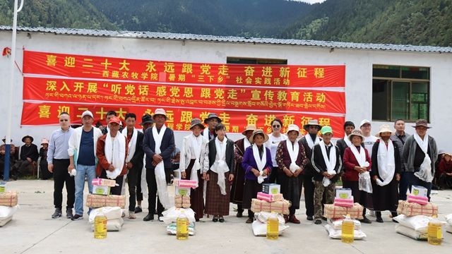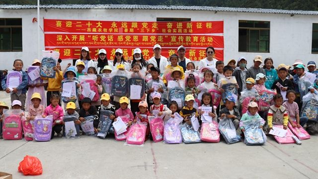 为深入学习宣传习近平新时代中国特色社会主义思想,贯彻落实习近平总书记关于青年工作的重要指示,引导和帮助广大青年学生在社会实践中“受教育、长才干、做贡献”,在观察实践中“听党话、感恩党、跟党走”,喜迎二十大的胜利召开,7月18日西藏农牧学院团委、西藏农牧学院电气工程学院共同在林芝市巴宜区百巴镇开朗村展开了“喜迎二十大 永远跟党走 奋进新征程”暑期“三下乡”社会实践活动。