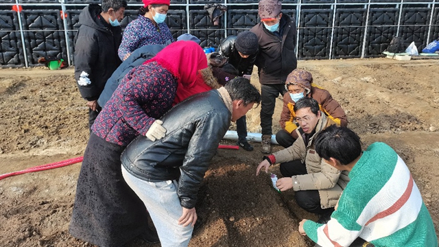 1月初,王忠红教授对西葫芦等多种蔬菜越冬栽培进行了现场培训,根据农牧民对种植技术掌握情况和网络培训学习进展,6月下旬,就温室土壤质量提升、合理使用化学肥料、病虫害综合防治、瓜类授粉、果菜类蔬菜种苗移栽与整枝打杈等方面再次进行了详细的讲解与示范。