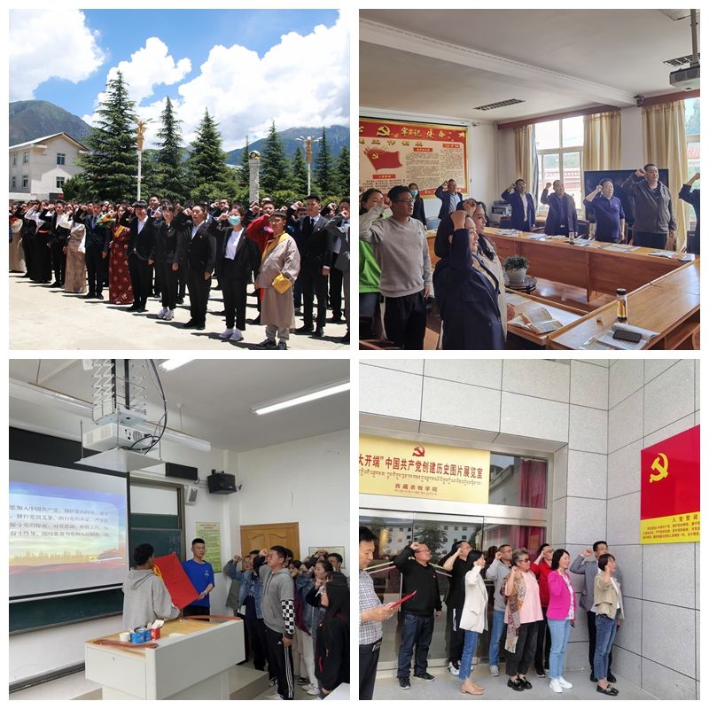 为纪念中国共产党成立 101 周年、喜迎党的二十大胜利召开,近日,西藏农牧学院各级党组织结合工作实际,组织开展了“两优一先”评选表彰、主题学习宣传教育、书记讲党课、重温入党誓词、走访慰问等庆祝中国共产党成立 101 周年系列活动,进一步激励广大师生员工感党恩、听党话、跟党走,继承和发扬党的光荣传统,推动学校高质量发展。