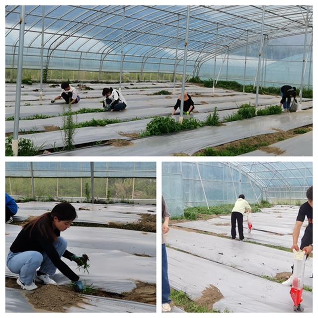 在学生农学党支部副书记王飞的带领下,同志们纷纷挽起袖子、拿起手套、工具,帮助村民除掉大棚中的杂草,使用点播器种起了玉米,助力夏播生产,现场一派繁忙景象。经过两个多小时劳作,大棚变得焕然一新,种上了玉米,杂草也全部被铲除。