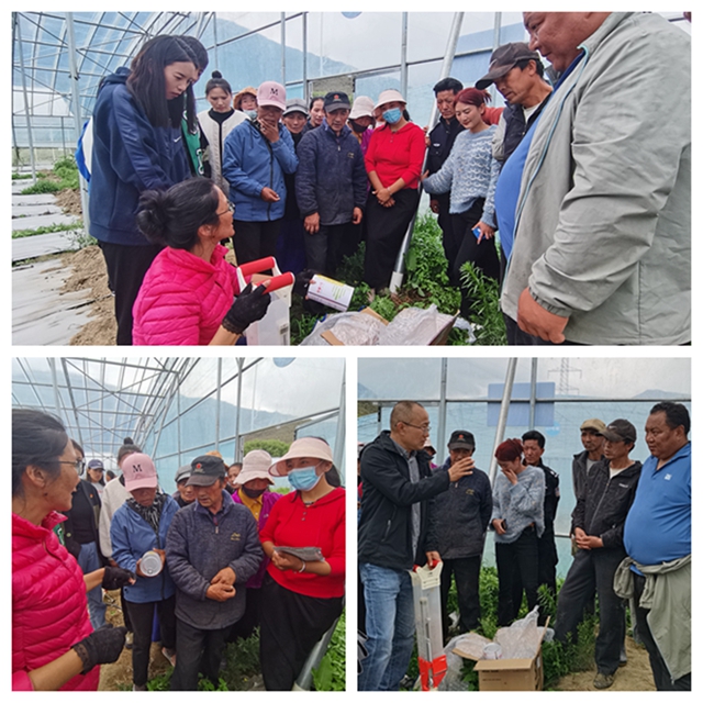 活动中,次仁央金副院长、王忠红教授和胡单副教授带着学生深入米瑞村田间地头,察看当地玉米种植情况,为村民们仔细讲解了玉米种子的种类、如何分辨玉米种类;玉米种植的种植方式和点播器的使用方法,与农民交流分享玉米种植经验,排查潜在的病虫害等,并提出专业的意见建议,村民们认真仔细的听副院长讲解,并对新技术纷纷表示认可。次仁央金副院长表示,“这次我们把主题党日活动放到田间地头,一来让我们的党员同志充分发扬不怕苦、不怕累、不怕脏的劳动精神,发挥党员的先锋模范作用。二来可以让同学们利用所学专业充分参与到农业生产中,教育引导大家深入农村、了解农业、接触农民,让大学生成为乡村振兴的生力军,助力我市乡村振兴。”