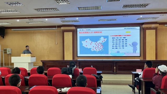 6月18日,中国广核新能源控股有限公司杨海雷一行4人来我院开展“核聚无限能量 新生卓越未来”宣讲主题活动,西藏农牧学院招生就业处处长布穷、电气工程学院党委书记达娃次仁、水利土木工程学院党委书记达娃莅临招聘会现场。来自电气工程及其自动化、能源与动力工程专业的150余名2022、2023届毕业生参加了本次招聘宣讲会。招聘宣讲会上,公司负责人通过播放宣传片、PPT展示、面对面交流等方式向同学们介绍公司的概况、构成、未来发展方向、人员需求以及选择该单位的理由等。随后,同学们也分别向公司负责人提出了一些与将来工作相关的实际问题,并得到了满意的回答。最后,公司负责人对有意签约的同学进行了一对一的初步面试。