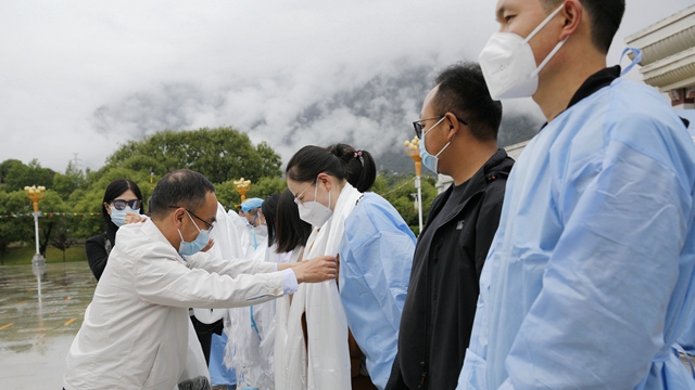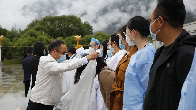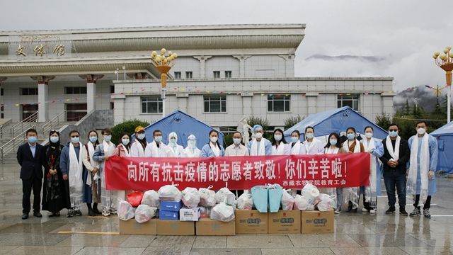 2022年6月10日上午,西藏农牧学院第18轮核酸检测在文体馆广场有序开展,学校党委副书记、院长娄源冰来到核酸检测现场,对20名辛勤的核酸检测志愿者进行了亲切慰问,为他们敬献了哈达,送去了牛奶、酸奶、饼干、干果、雨伞等慰问物资。