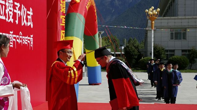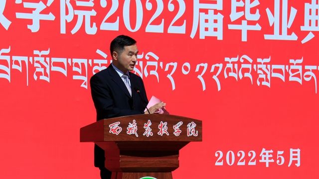 5月27日上午,西藏农牧学院在学校文体馆广场隆重举行2022届毕业典礼暨学位授予仪式。学院党委书记、副院长云丹加措,党委副书记、院长娄源冰,党委副书记、副院长王从严,党委委员、副院长郭永刚,党委委员、副院长强巴央宗出席了典礼。各二级学院(部、所)及相关职能部门主要负责同志,教师代表、毕业生及在校生代表参加了典礼活动。