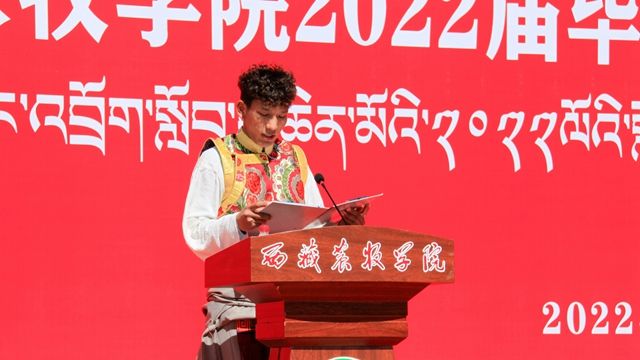随后,毕业生代表水利土木工程学院次仁顿珠、教师代表动物科学学院孙磊老师分别在大会上发言。