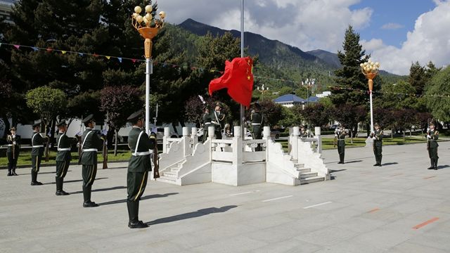 典礼在雄壮的国歌声中拉开帷幕。