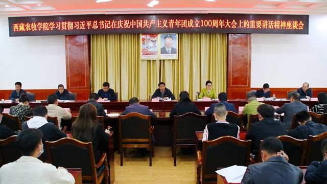 5月18日,我校召开学习贯彻习近平总书记在庆祝中国共产主义青年团成立100周年大会上的重要讲话精神座谈会。院党委书记、副院长云丹加措,院党委委员、副院长强巴央宗,院长助理冯建刚,院办公室、组织部、宣传部、学工处、团委、工会、研究生处,各二级学院(部、所)主要负责人,基层团组织代表,学生工作处代表、思政教师代表,辅导员代表,研究生代表、本科生代表出席参加了会议。会议由副院长强巴央宗主持。