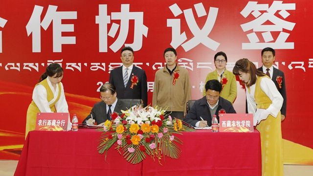 5月19日,西藏农牧学院与中国农业银行西藏分行战略合作框架协议签订仪式在我校举行。学校党委书记、副院长云丹加措,中国农业银行西藏分行党委书记、行长林庆出席仪式并代表双方签署《西藏农牧学院与中国农业银行西藏自治区分行战略合作框架协议书》。中国农业银行西藏分行党委委员、副行长王洪主持。学校党委委员、副院长郭永刚,党委委员、副院长强巴央宗,学校相关职能部门及各二级学院负责同志,中国农业银行西藏分行有关部门负责同志、林芝分行党委班子成员参加仪式。