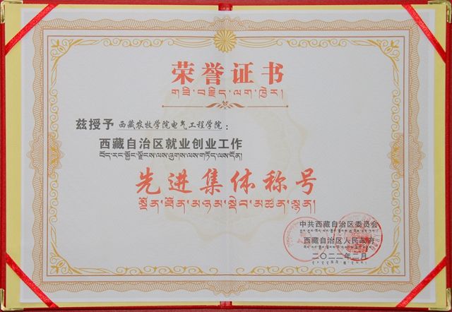 日前,中共西藏自治区委员会、西藏自治区人民政府授予西藏农牧学院电气工程学院“西藏自治区就业创业工作先进集体”荣誉称号。