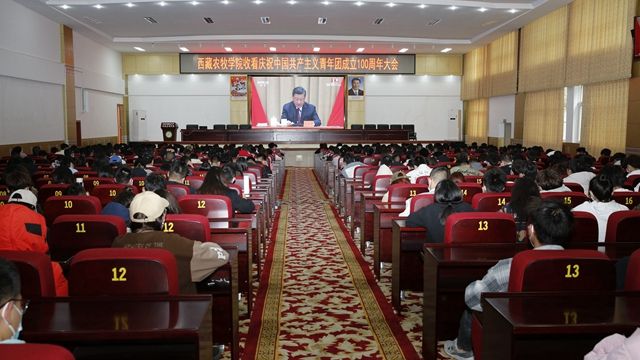 在青春澎湃的五月,中国共青团迎来她的百岁生日。5月10日上午,庆祝中国共产主义青年团成立100周年大会在北京人民大会堂隆重举行,习近平总书记出席大会并发表重要讲话。西藏农牧学院组织干部教工、团学代表集中收看了大会实况。