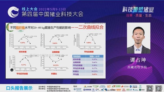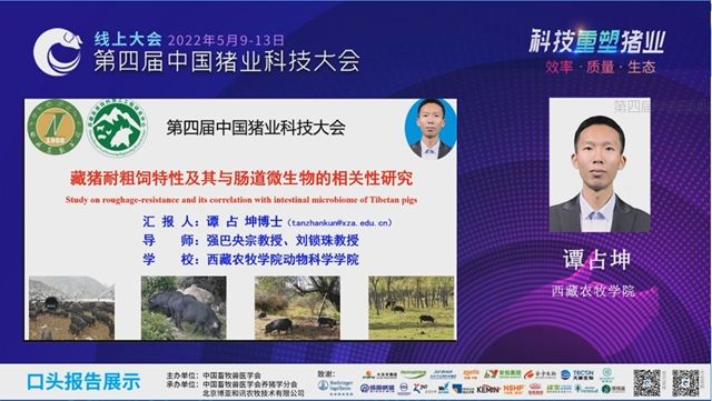 西藏农牧学院动物科学学院谭占坤副教授在大会上做口头报告,报告题目为“藏猪耐粗饲特性与肠道微生物的相关性研究”。