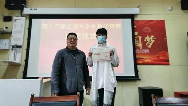 西藏农牧学院共有34名学生报名参加本次竞赛,通过培训、练习、角逐,最后有8人获得赛区奖。其中,20级农业电气化专业黎豫冬和20级环境工程专业周宇超获得一等奖,20级农业电气化专业张琼、20级土木工程专业杨小杰、20级植物保护专业王亚宁、19级地资专业许天赐获得二等奖,20级食品质量与安全专业耿志远、20级给排水科学与工程专业王燊获得三等奖。数学教研室主任敬久旺为了激励学生勤奋好学、刻苦钻研,为学生自设奖学金。
