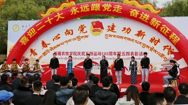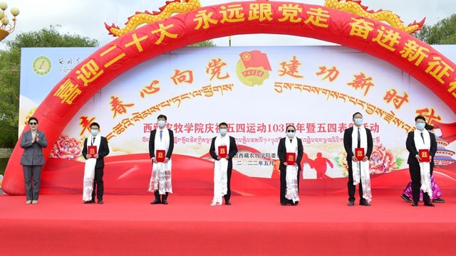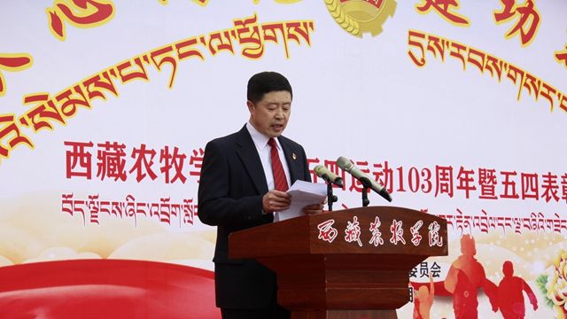 2022年5月4日上午10:00,西藏农牧学院在文体馆前召开了“青春心向党 建功新时代”纪念“五四”运动103周年暨2022年“五四”表彰大会。院党委书记、副院长云丹加措,院党委副书记、院长娄源冰,院党委委员、副院长郭永刚,院党委委员、副院长强巴央宗及各县处级单位领导出席大会,会议由团委书记白玛卓嘎主持,获奖代表、青年师生代表近200人参加了大会。