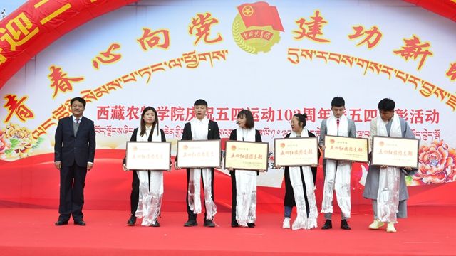 云丹加措书记为“五四红旗团总支”“五四红旗团支部”颁奖