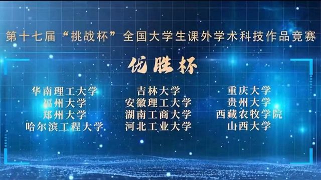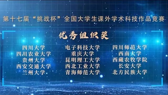 第十七届“挑战杯”全国大学生课外学术科技作品竞赛于4月12日顺利闭幕。我校取得历史性突破,首次捧得“挑战杯”全国大学生课外学术科技作品竞赛“优胜杯”,同时连续赢得优秀组织奖和“挑战杯”发起高校。是西藏自治区高校首次赢得“优胜杯”奖项、特等奖,突破了我校成绩,弥补了西藏高校空白。