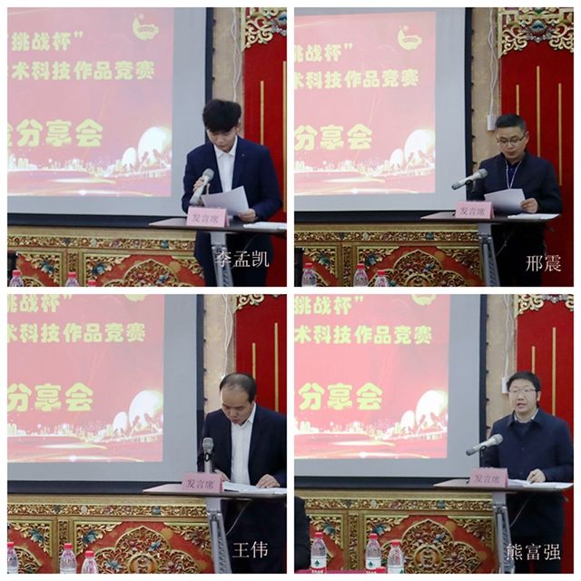 获奖作品学院代表资源与环境学院院长邢震、指导教师代表资环学院王伟副教授先后发言,他们特别谈到,我校在重视学生实践能力挖掘、培养学生特长因材施教等方面的教育优势,讲述了带着学生走遍西藏山山水水的实践之路。他们从学院人才培养规格要求、搭建学生创新创业平台、建设教师团队、鼓励教师开展学生创新创业指导、结合专业教育培养专业兴趣、统筹各方资源支持创新创业等方面分析了“挑战杯”取得成绩的基础性要素,对下一步成绩的稳定提高提出了系列建议。