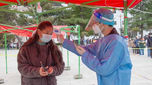培训会上,林芝市人民医院护理部主任刘丽红、感染科副主任赵青、信息科负责人谭琳用视频、文字讲解与实际操作相结合的方式,分场分批对采样、信息录入、样本收集转运、医废收集转运、环境消杀等各工作环节进行了全方位培训。培训还通过还原真实情景下核酸检测的形式,让在场每位信息采集员使用核酸检测APP实际操作,并对操作过程中遇到的问题进行一对一的解答。同时,对每位参训人员进行穿脱防护服实际操作。