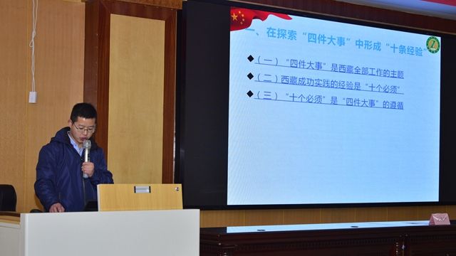 开班仪式结束后,学院党委宣传部思想政治教研室李华兴老师做了题为“辉煌七十载 圆梦新时代—学习西藏第十次党代会精神”的专题报告。