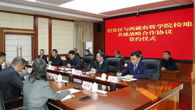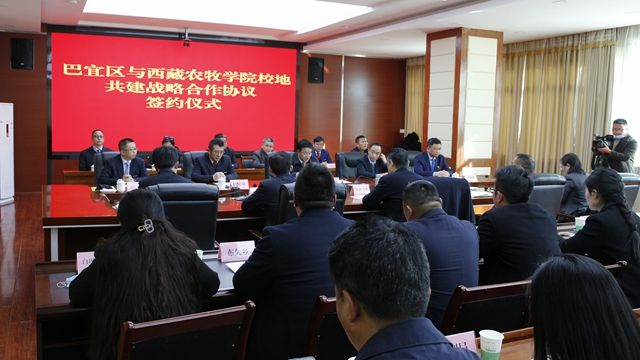 院长助理冯建刚,巴宜区政府副区长杨帆,校办公室、科研处及相关二级学院负责人、专家学者代表,巴宜区各乡镇(街道)、区直各相关部门负责人参加仪式,并围绕细化落实战略合作协议进行了专题对接交流,就科研领域合作、农牧业产业推广、高原植物园建设等达成初步合作意向。