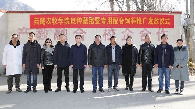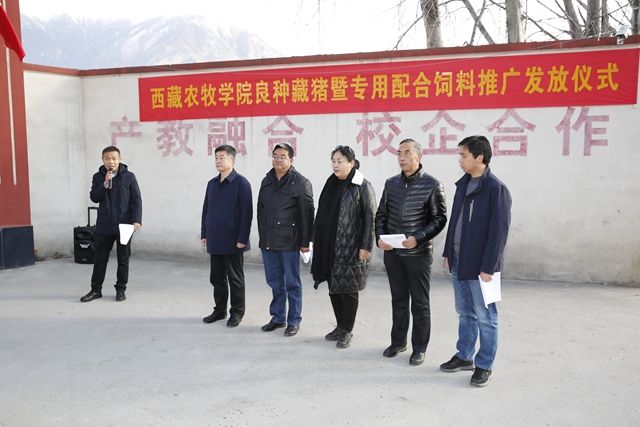 2021年11月27日,我校开展良种藏猪暨专用配合饲料推广发放活动,此次活动在林芝藏猪农业科技园区举行,推广发放单位为山南市隆子县色吉雪种养殖合作社。科研处处长潘刚、副处长商鹏,山南市隆子县色吉雪种养殖合作社总经理扎西顿珠,我校动物科学学院党委书记陈彤、院长索朗斯珠等领导、师生参加了此次活动。推广仪式由科研处副处长商鹏主持。