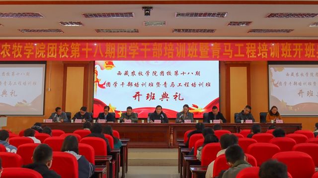 为深入学习贯彻习近平新时代中国特色社会主义思想,认真贯彻落实习近平总书记关于青年工作的重要思想,大力实施青年马克思主义者培养工程,提高广大团学干部的政治素养和综合素质,2021年11月12日,校团委在一号报告厅举办了团校第十八期团学干部培训班暨青马工程培训班开班典礼。开班典礼由校团委书记白玛卓嘎主持,校党委副书记、副院长王从严受邀出席典礼并作了重要讲话,各二级学院团学工作分管领导、校团委副书记普旺堆、校团委全体干部、各二级学院团总支书记、90名参训学员代表参加了开班典礼。