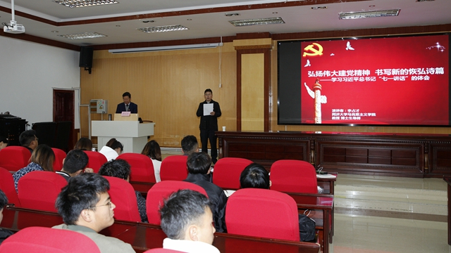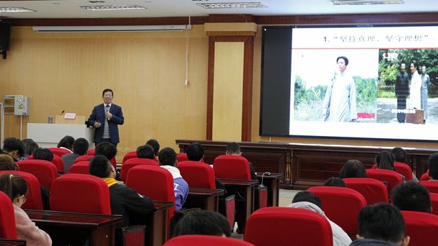 当天下午,李占才教授以“弘扬伟大建党精神 书写新的恢弘诗篇——学习习近平总书记“七一讲话”的体会”为题,给全校师生代表作主题报告。李占才教授从“习近平总书记‘七一讲话’要点、深刻领会伟大建党精神、希望寄予青年”等三个方面,引领师生回顾了百年党史的“四个伟大成就”、领会了建党精神 的科学内涵、重温了时代青年的光荣使命,启示大家既要看到伟大成就的举世瞩目以坚定“四个自信”,又要领悟伟大成就的来之不易以倍加珍惜、持续奋斗。在讲到伟大建党精神的精髓时,作为《觉醒年代》电视剧的主要编剧者和《细说觉醒年代》著作的副主编,李占才教授以自身编著经历中的所见所闻、所思所想,不时以小故事阐释大道理穿插迂回,并以声情并茂的演绎贯通还原历史本来、带领师生思考时代未来。在场师生认真聆听,动情之处或舒心一笑、或沉思一刻、或忧愤一时、或澎湃难抑,现场频频掌声雷动、时时欢呼共鸣。