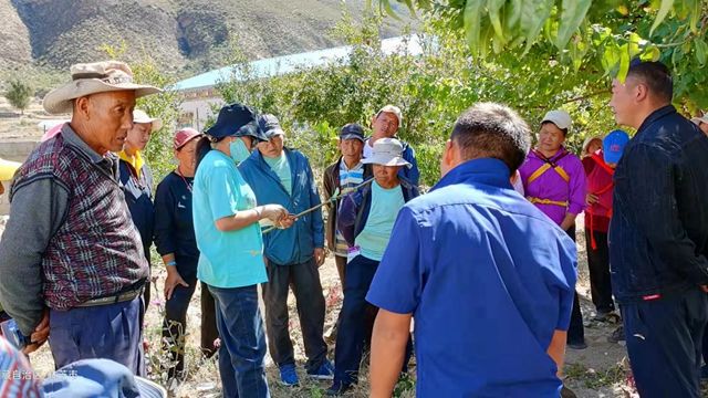 在当地党委、政府的高度重视和大力支持下,经过前期需求调研和精准对接,10月23日上午,古玉乡高素质农牧民培训班如期开班。园艺学副教授德庆措姆和动物医学副教授牛家强两位专家坚持理论与实践相结合、侧重实践操作的方式,为古玉乡7个行政村“两委”班子成员、村兽医、科技特派员及附近村庄部分农牧民群众讲解示范农作物生产及田间管理,果树修剪嫁接、病虫害防治,牛猪马等家畜常见疫病防治、家畜驱虫、兽药使用等知识。