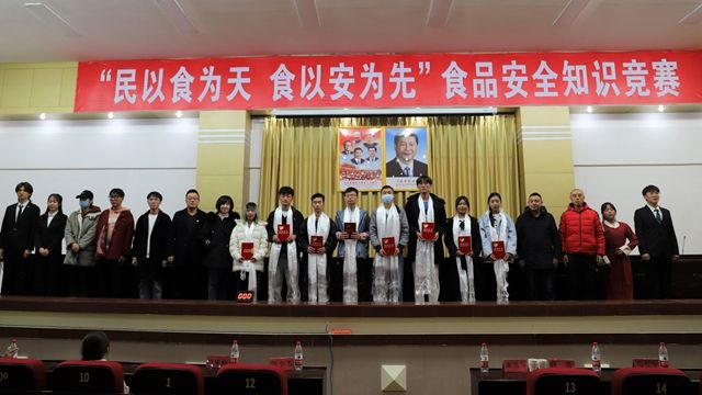 食品安全关系到每个人的切身利益和身体健康。为了促进学生学习食品知识、扩大食品安全知识面,提高学风建设以及精神文明建设。2021年10月31日,食品科学学院在行政楼一楼会议室举办了以“民以食为天,食以安为先”为主题的食品安全知识竞赛,食品教研室副教授辜雪冬、马长中、薛蓓,学生辅导员马少飞、巩雪梅受邀担任评委,8支班级代表队参加了比赛。