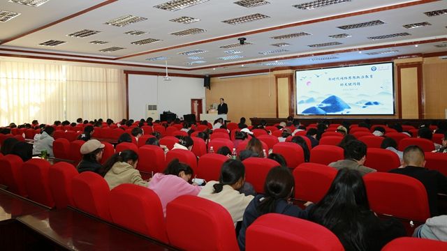 为深入贯彻落实习近平总书记在全国高校思想政治工作会议、学校思想政治理论课教师座谈会上的重要讲话精神,切实加强学校网络思政教育工作,恰逢国家网络安全宣传周之际,我校于10月12日特邀武汉大学思想政治教育研究院院长,马克思主义学院教授、博士生导师骆郁廷来校,举办题为“新时代网络思想政治教育的关键问题”的学术讲座。思想政治理论课专兼职教师,学工处、团委、各二级学院相关负责同志、辅导员及部分学生代表约200人听取了本次讲座,讲座由学生工作处处长李新堂主持。
