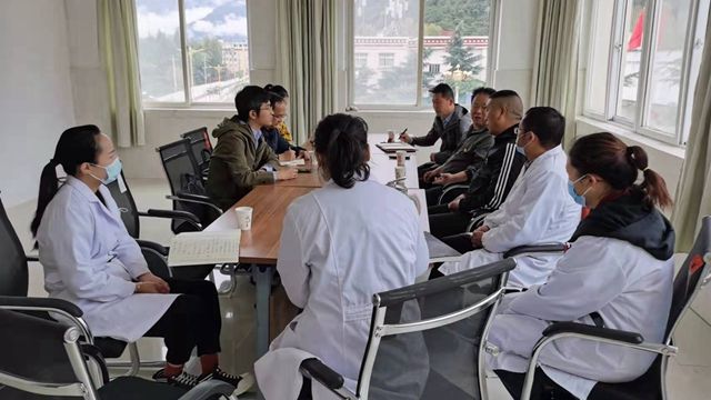 广东医科大学援藏医疗队专家实地查看我校卫生所整体办公环境及医疗设备状况。随后召开了座谈会,座谈会上,后勤管理处党总支书记布穷对广东医科大学援藏医疗队一行来我校莅临指导表示热烈欢迎,并对广东医科大学援藏医疗队对我校医疗卫生工作的关心和支持表示由衷的感谢。后勤管理处处长普琼就校卫生所目前工作中存在的困难及亟需解决的相关问题与医疗队做了深入交流。后勤管理处副处长张永青向援藏医疗队详细介绍了我校卫生所工作情况,并就有关工作向专家组做了汇报。校卫生所全体医护人员就具体工作与专家组进行了交流。