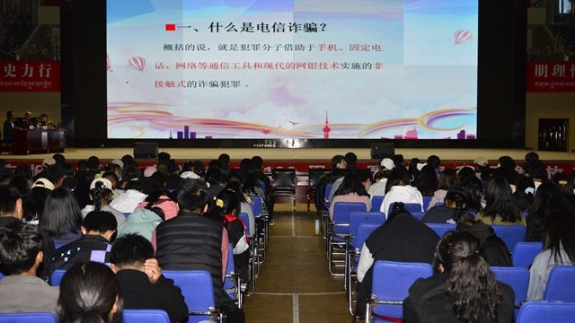会议伊始,旦巴书记强调会场纪律,介绍了此次讲座的民警和讲座内容,指出开展此次教育活动的意义。会上,毛楠同志结合实际案例及同学们在日常生活学习中可能遇到的不法侵害展开讲解。随后,司绍祖同志就电信诈骗分别从电信诈骗的定义、起源、常见手段、预防措施四个方面展开详细的讲解。最后,旦巴书记表达了对两位民警同志的感谢,提出同学们要自觉严格遵守法律法规和学校规章制度的要求。