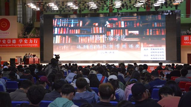 为加强学生法制观念,提高知法守法意识。动物科学学院于10月8日在文体馆举行“法治教育”专题讲座。此次讲座由林芝市公安局牵头,委派米林县公安局刑事侦查大队民警司绍祖和毛楠主讲,会议由动物科学学院党委副书记旦巴主持,辅导员及全体学生班参会。