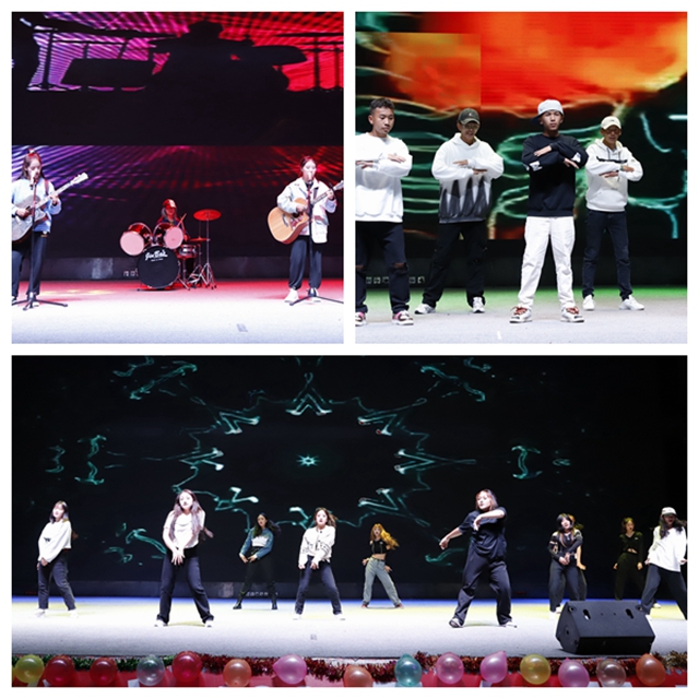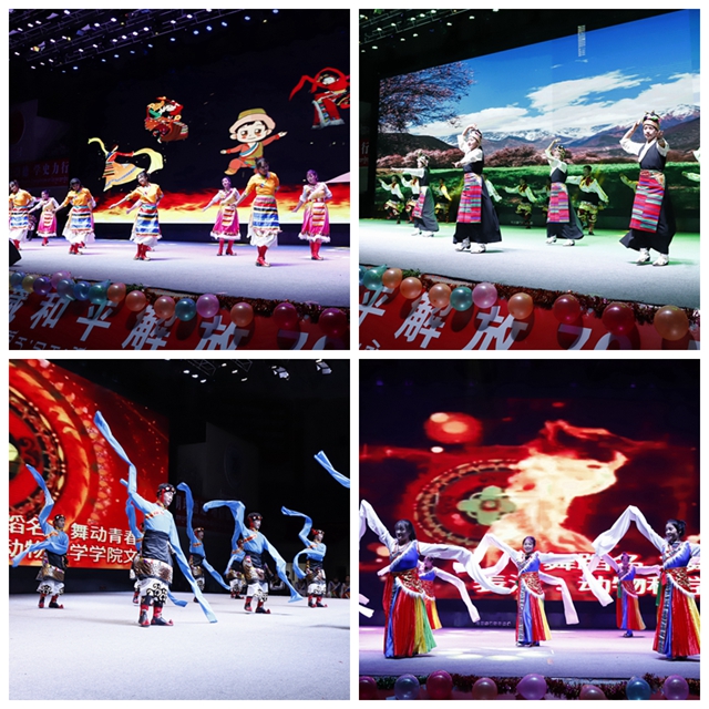 群舞《踏地飞歌》《吉祥贡布》《舞动青春》动感热烈,魅力四射,征服了在场观众,使得全场为之沸腾;情景剧《传承中的西藏》、京剧《举鼎观画》、话剧《招新那些事》以丰富多样的艺术形式,为现场观众们带去了笑声和欢乐,凸显了中华民族优秀传统文化的代代传承;独唱《我们幸福的生活》表达了对美好明天的憧憬和新时代下奋斗的幸福;激情洋溢的街舞《Youth blossom》和独具特色的《baby check it out》乐队演奏给大家带来强烈的视觉盛宴,赢得了同学们雷鸣般的欢呼声与呐喊声,把晚会现场气氛一次又一次推向高潮,让2021级的新同学亲身感受了我校学生浓厚的文艺素养和激扬的青春风采。