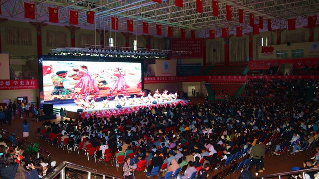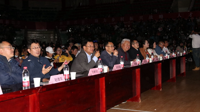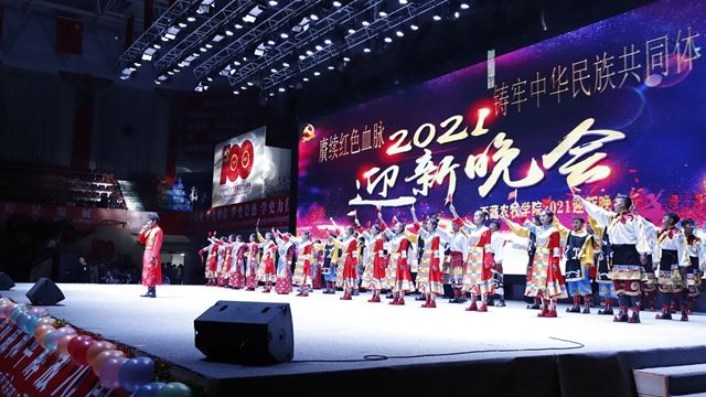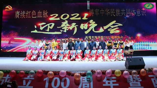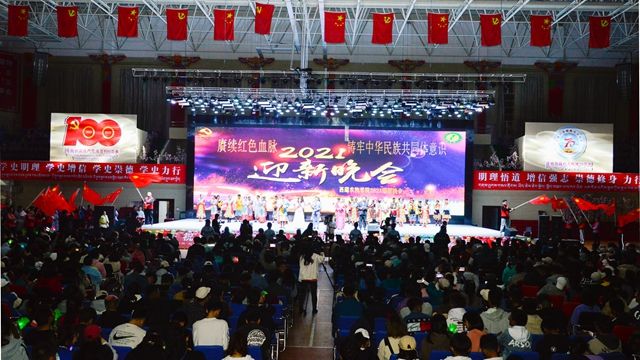 2021年9月26日晚19:00,西藏农牧学院“赓续红色血脉 铸牢中华民族共同体意识”主题迎新晚会在学校文体馆隆重举行。院党委书记、副院长云丹加措,院党委副书记、院长娄源冰,院党委委员、纪委书记、自治区监委驻西藏农牧学院监察专员边巴次仁,学校各职能部门、各二级学院、部、所领导莅临晚会现场,同2021级全体新生及在校部分师生2100余人共同观看了演出。