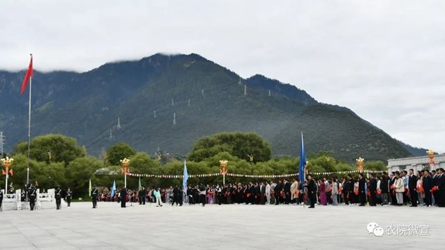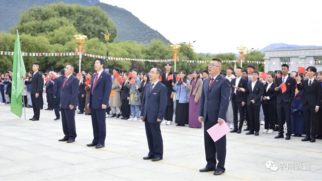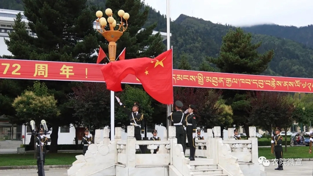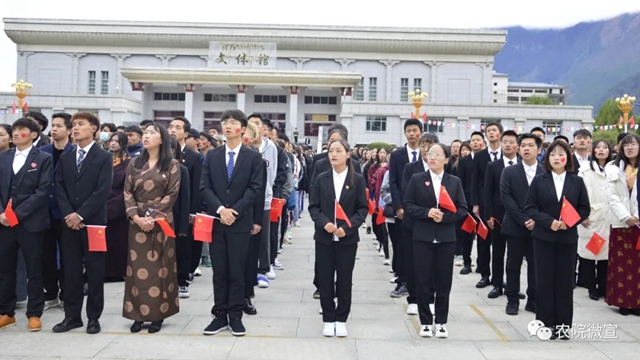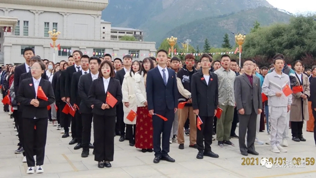 2021年10月1日,西藏农牧学院在文体馆广场举行庄严的升国旗唱国歌仪式,热烈庆祝中华人民共和国成立72周年。