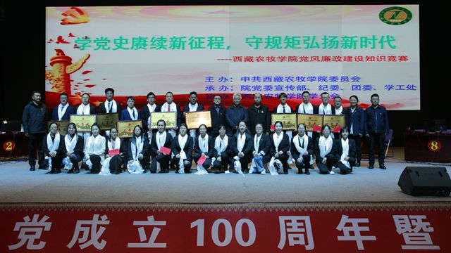 为认真贯彻落实十九届中央纪委五次全会和自治区党委九届八次、九次、十次全会以及区纪委九届六次全会部署要求,进一步营造崇尚廉洁的校园文化氛围和风清气正的校园政治生态,根据学校党委党风廉政建设工作总体安排,9月16日晚,我院在文体馆隆重举办了“学党史赓续新征程,守规矩弘扬新时代”党风廉政知识竞赛。西藏农牧学院纪委书记、自治区监察委员会驻西藏农牧学院监察专员边巴次仁、各二级单位主要领导等莅临现场,与全校师生党员共1500余人一同观看比赛。